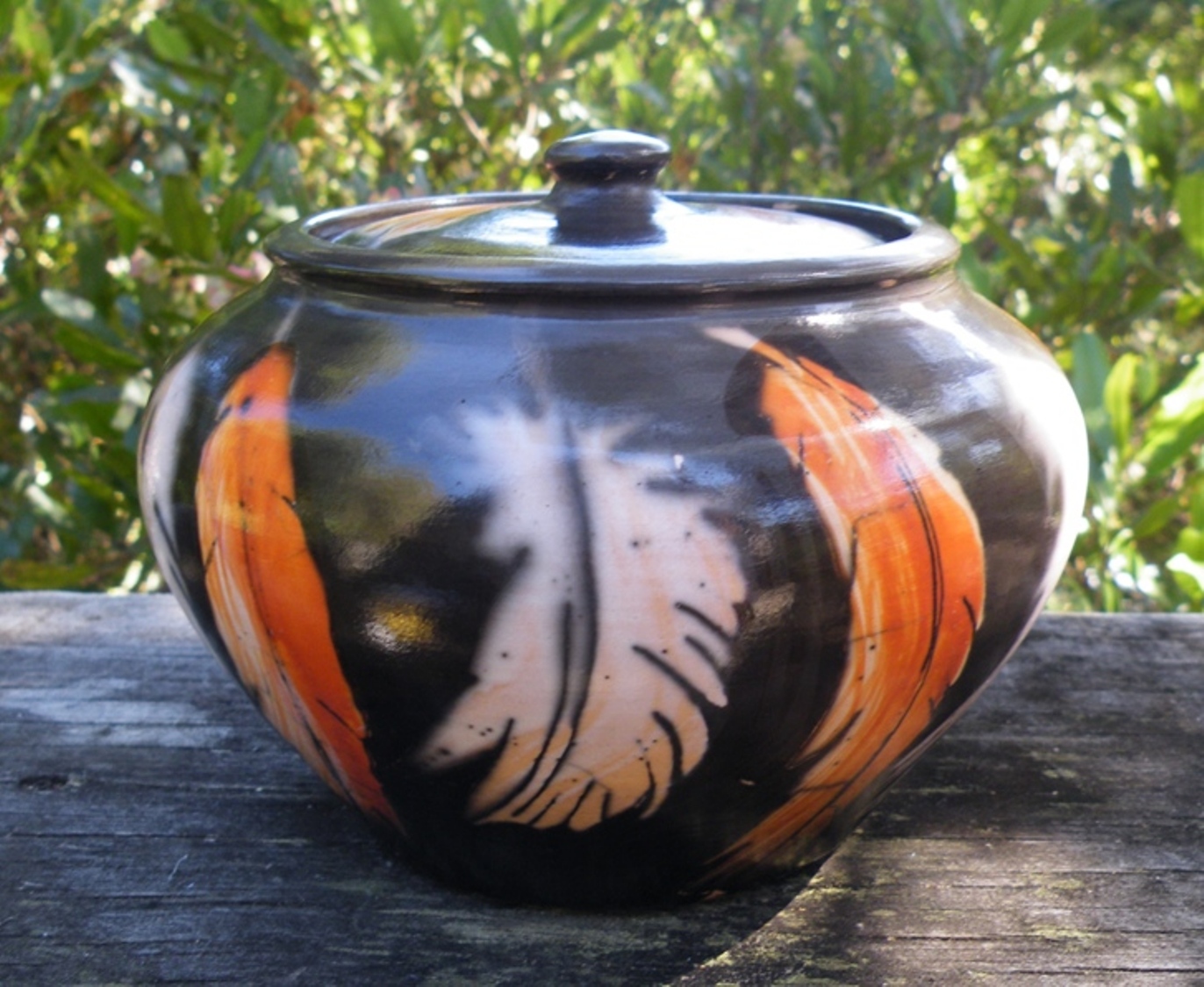 orange and white feather jar